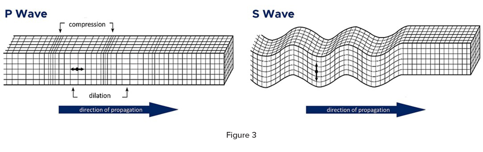A vibrator emits two types of energy waves: S-waves (shear waves), which are slower-moving and travel through solids but not liquids. Their intensity increases as the vibrator speed increases and can cause separation. The other type, P-waves (pressure waves), are faster-moving and can travel through both solids and liquids. The strength of this wave increases with the size of the vibrator head, which helps prevent material separation. (See Figure 3)